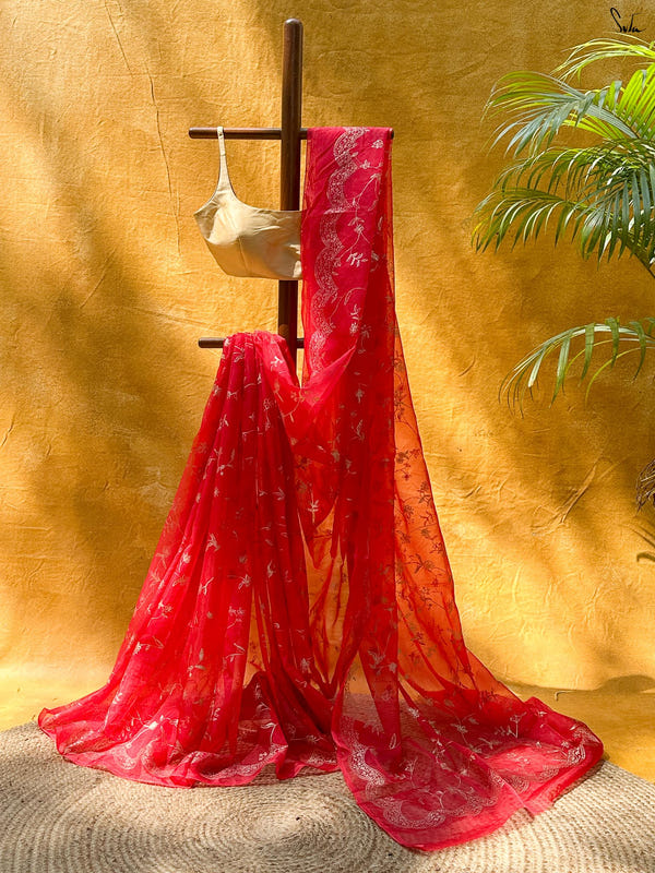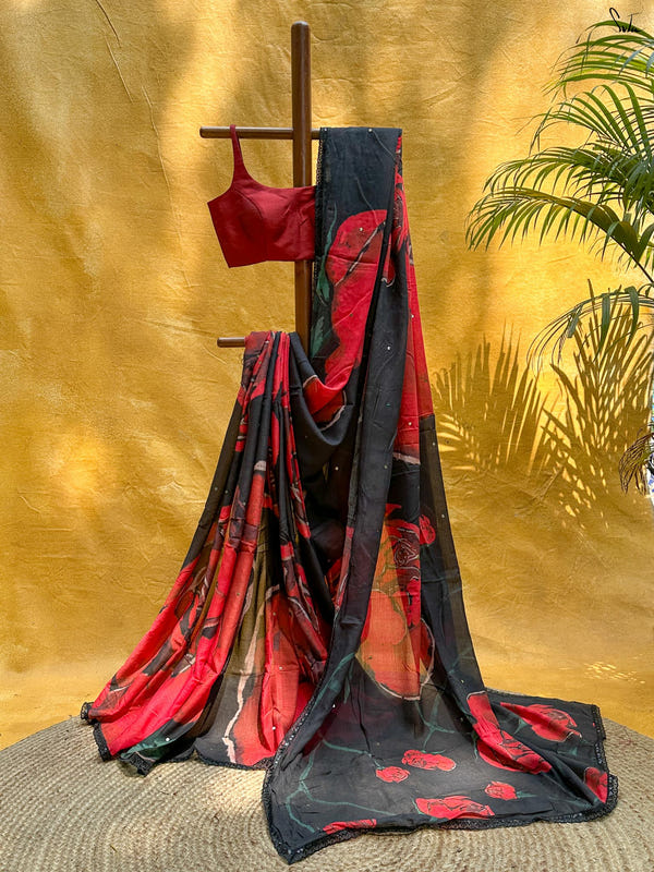 Statement sarees in the most auspicious color palette.